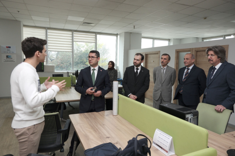 Ziyaret kapsamında ULUTEK Teknopark Genel Müdürü Prof. Dr. İrfan Karagöz, teknoparkın genel yapısı, faaliyet alanları ve yürütülen projelere ilişkin bir sunum gerçekleştirdi.