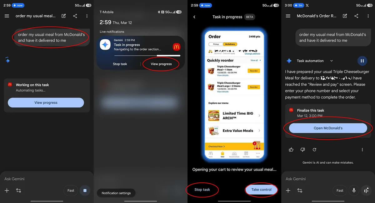 Yapay zeka arka planda bu işlemleri gerçekleştirirken kullanıcılar sürecin nasıl ilerlediğini rahatça takip edebiliyor. Gemini çalışırken telefonunuza bir bildirim geliyor ve isterseniz işlemi canlı izleyebiliyor veya telefonunuzu normal şekilde kullanmaya devam edebiliyorsunuz.