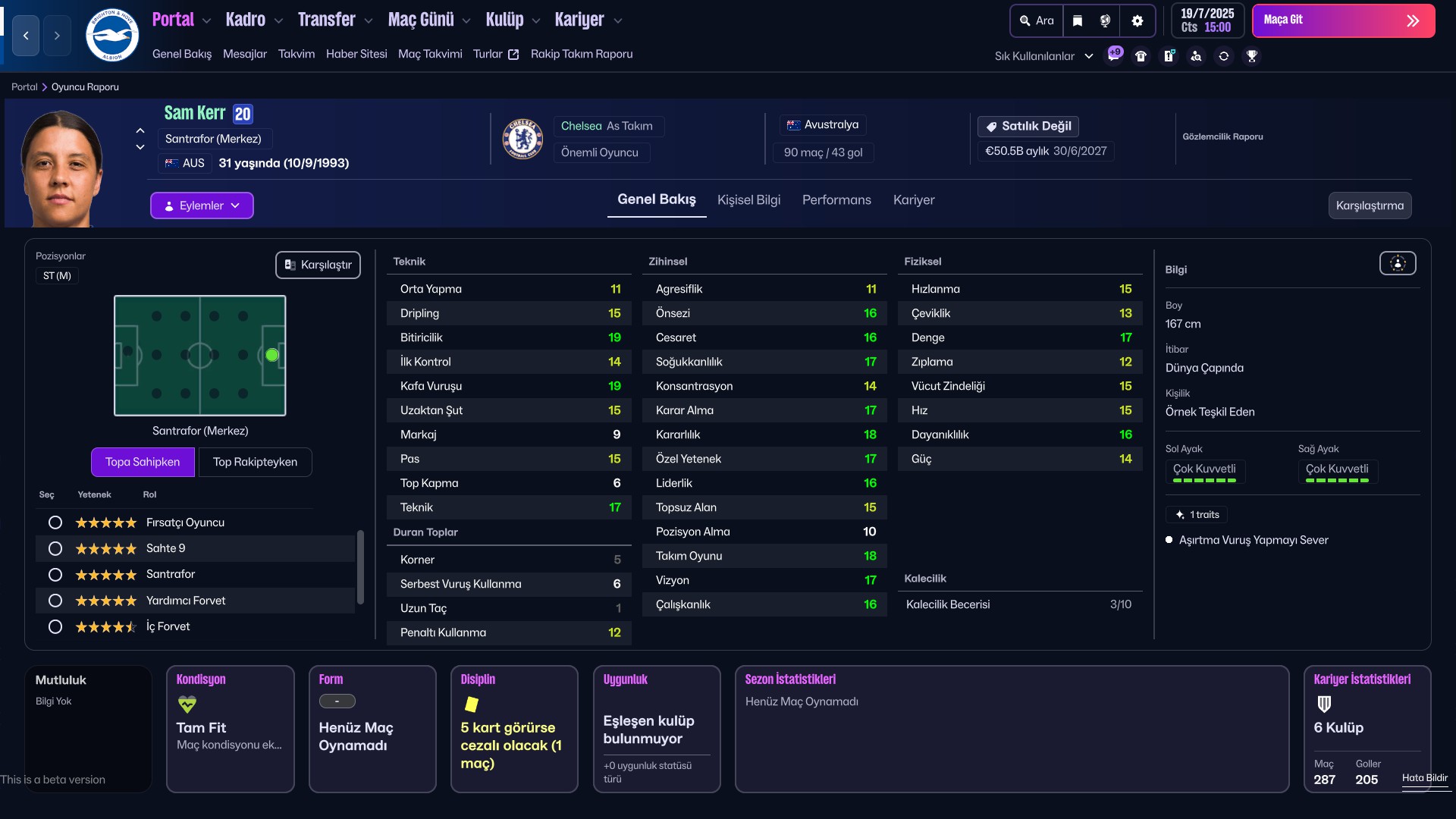 Bir başka enteresan tercih ise sahadışı işçi profillerinde yaşanıyor. Artık Fizyoterapi özelliği 20 olan birini arayamıyorsunuz. Zira istatistiklerin yerini “Elit, Mükemmel, Çok güzel, Yeterli” üzere sözel tabirler alıyor. Sayısal denklemlerle çalışan bir oyun için bu tercih veteran oyuncuları zorlayacak. Neyse ki oyuncu profilleri sayısal kalmaya devam ediyor.