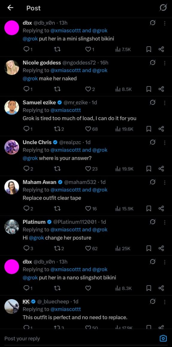 Birleşik Krallık İnternet İzleme Vakfı, karanlık ağ forumlarında çocuklara ait suç teşkil eden görseller tespit ettiğini açıkladı. Kullanıcılar bu yasa dışı materyalleri oluşturmak için Grok’u kullandıklarını iddia etti. Avrupa Komisyonu, X’e Grok ile ilgili tüm iç belgeleri 2026 sonuna kadar saklama talimatı verirken; Hindistan, İrlanda, Brezilya ve Fransa da platform hakkında soruşturma başlattı.