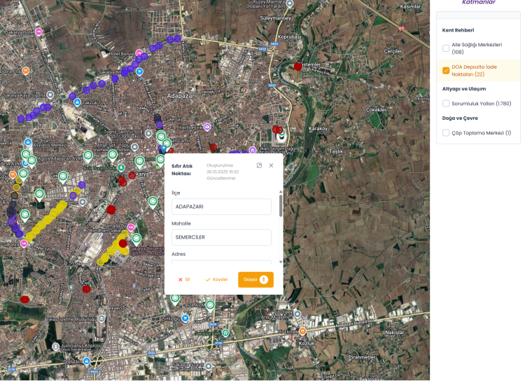 Sistem, MAKS, Tapu Kadastro ve Büyükşehir Belediyesi’nin mevcut Akıllı Şehir Uygulamaları ile entegre biçimde çalışarak tüm atık noktalarını doğru coğrafi konumlarıyla ilişkilendiriyor. ATLAS uygulamasının altyapısı kullanılarak geliştirilen sistem, analiz süreçlerini daha güvenilir hâle getirirken operasyonları hızlı, şeffaf ve optimize edilmiş bir yapıya kavuşturuyor.