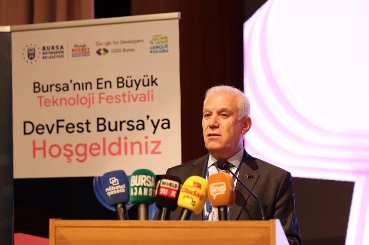 Bursa’nın en büyük teknoloji festivali ‘DevFest’25 Bursa Teknoloji Festivali’ne katılarak teknoloji tutkunlarıyla bir araya gelen Bursa Büyükşehir Belediye Başkanı Mustafa Bozbey, her geçen gün daha fazla dijitalleşen dünyada yeni fikirlerin, girişimlerin ve icatların yaşamın doğal bir parçası haline geldiğini ifade etti. Teknoloji dünyasının, girişimcilerin, yazılımcıların ve gençlerin katkısıyla her geçen gün daha da geliştiğini vurgulayan Başkan Mustafa Bozbey, “Yapay zekanın hayatın her alanında konuşulduğu bir ortamda gelişmeleri takip etmek, yeni teknolojileri ve yazılım dillerini yakalamak, çağın gerisinde kalmamak hayati önem taşıyor. İşte bu yüzden DevFest 2025, dijital aklın ortaya koyduğu yenilikleri keşfettiğimiz, güncel gelişmeleri doğrudan deneyimlediğimiz ve geleceği birlikte tartıştığımız çok değerli bir platformdur” dedi.