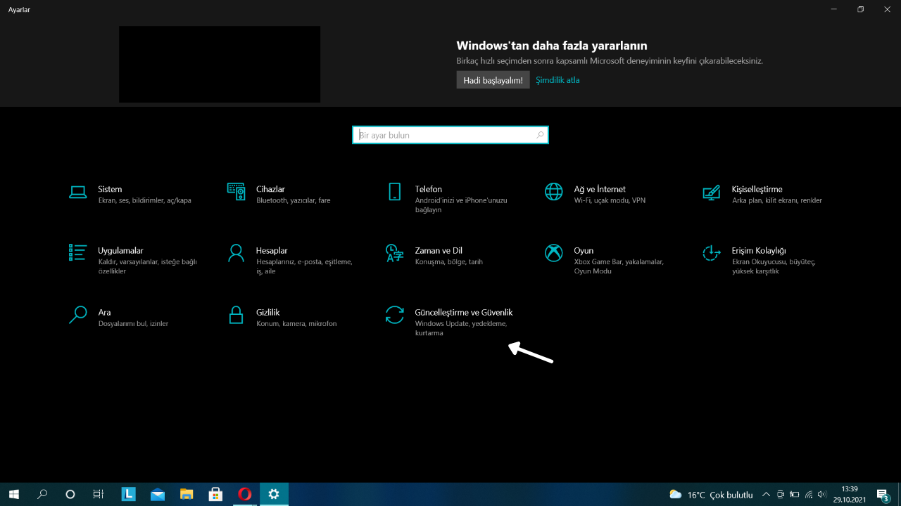 • Karşınıza çıkan seçeneklerden “Güncelleştirme ve Güvenlik” seçeneğini seçin.